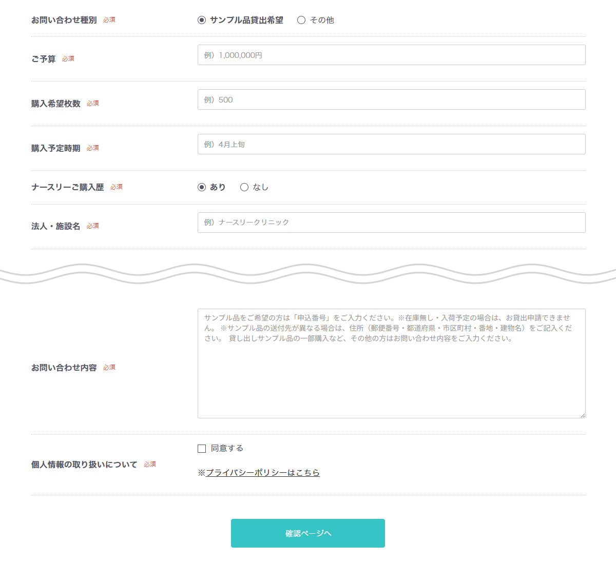 サンプル貸出の申請フォームより必要事項を入力し、お申し込みください。