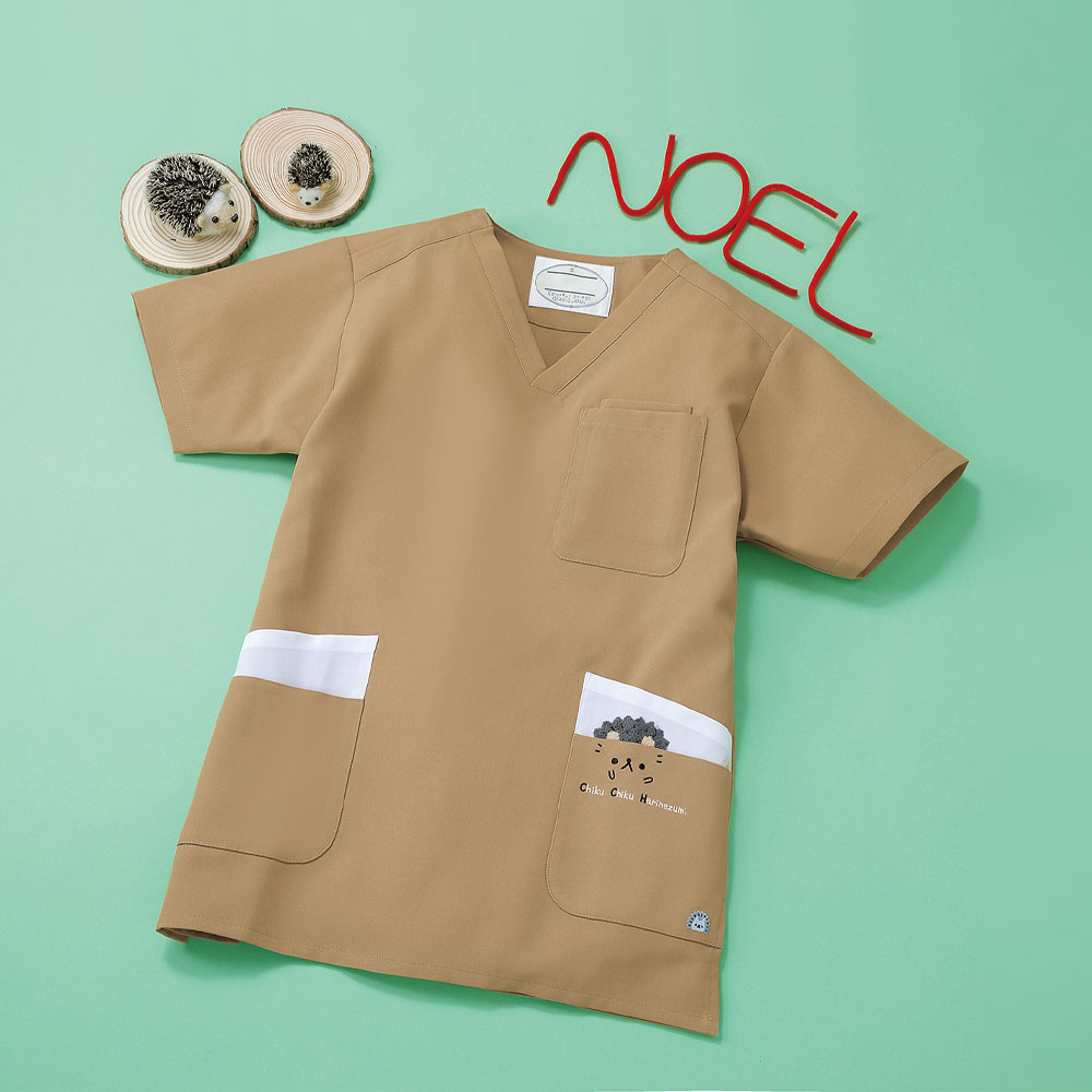 思わず「かわいい?!」と声を上げてしまいそうなアニマルがポケットにくっついた、キュートなスクラブです。