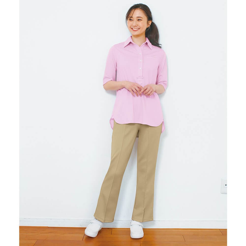 ●ウエスト総ゴム(調節ひも付)、両脇ポケット