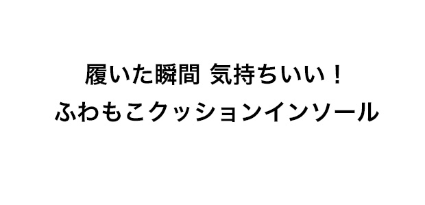 ふわっとした感触のクッションインソールを使った、気持ちのいい履き心地のスリッポンシューズです。