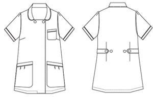 ほんのり可愛いチェックパイピングが白衣スタイルをおしゃれに変身。