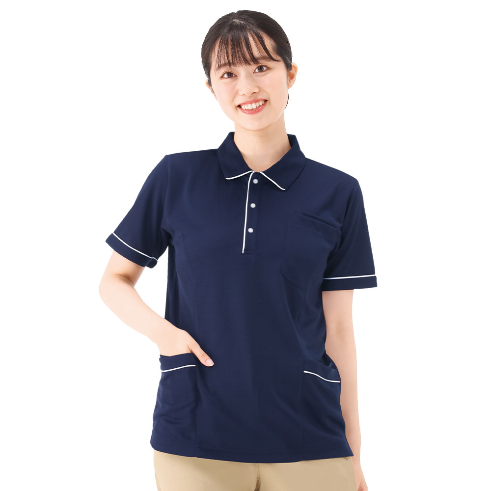 おしゃれな配色パイピングポロシャツです。