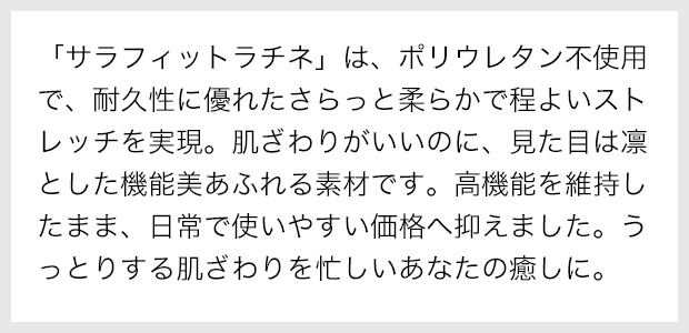 素材には肌ざわりのよい「サラフィットラチネ」を採用。