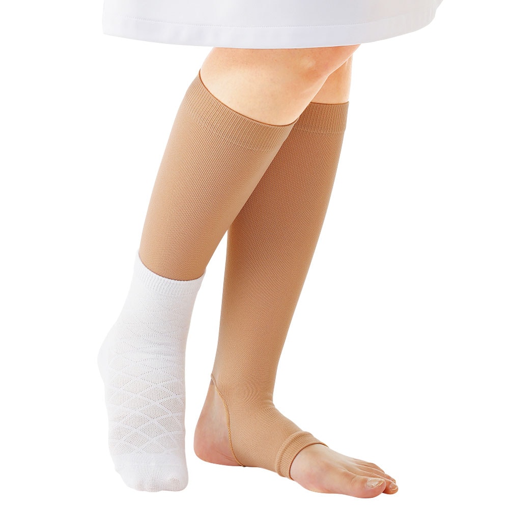 サポータータイプは歩いているとズレるのが気になるという人はかかとなしのものを履いてみては?
