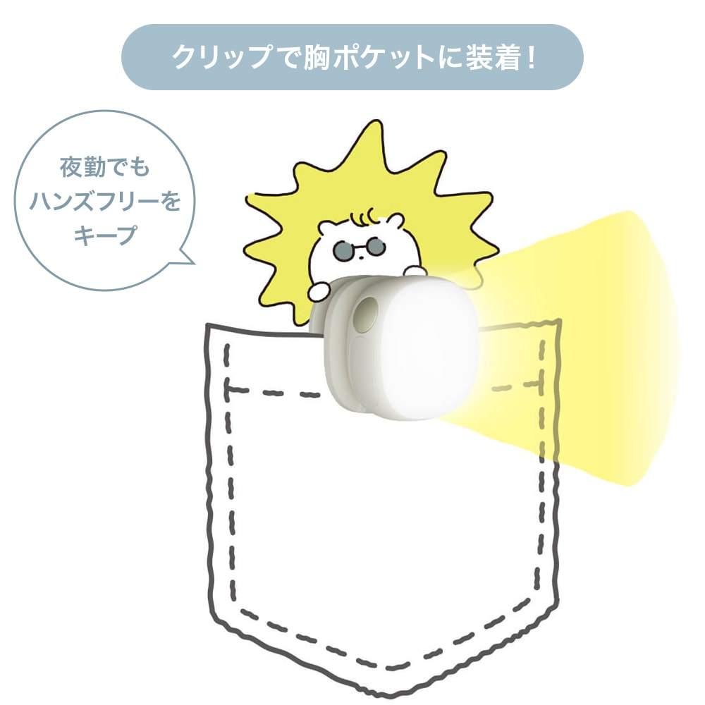 クリップで胸ポケットに装着!夜勤でもハンズフリーをキープ