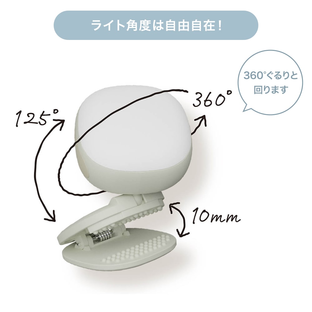 最初ライトとクリップ部が固定されてるまま使用していたので挟みにくいと思っていましたが、360°回転する事を思い出し、クリップ部にライトが固定されている事を発見。