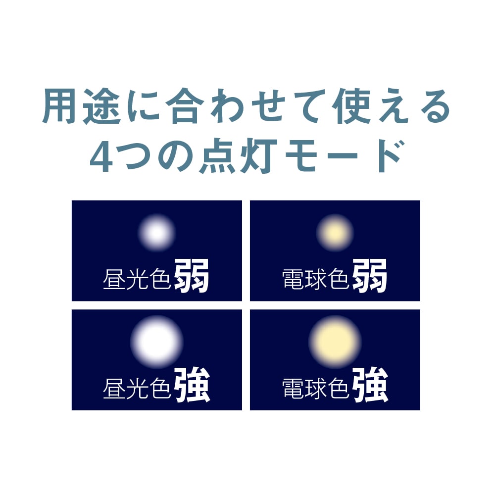 ○LEDライト/点灯4モード(昼光色・弱/昼光色・強/電球色・弱/電球色・強)