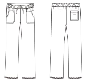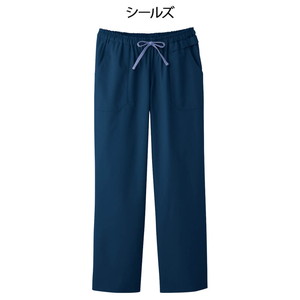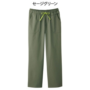 - ウエストひも入り総ゴム仕様、便利な両脇ポケット付