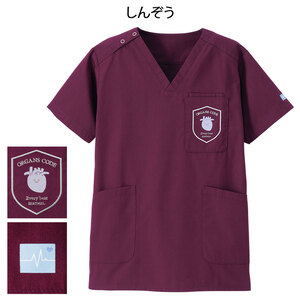 ●胸ポケットに刺繍+プリント加工、左袖口にプリント加工あり
