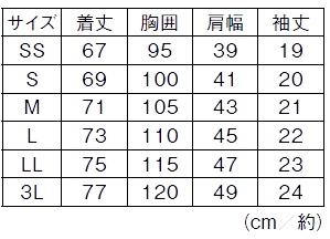 ※男女兼用サイズにつき、サイズ内訳をご覧ください