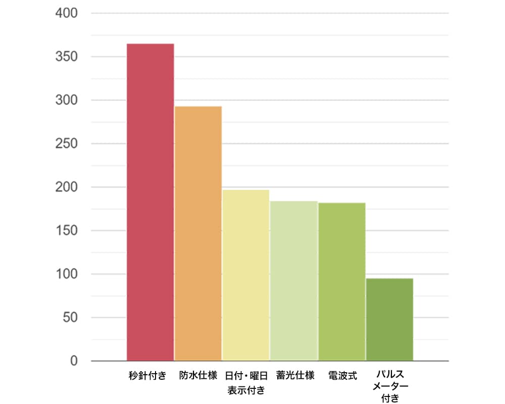 防水、蓄光、日付曜日表示付きなど機能面もいろいろ...。