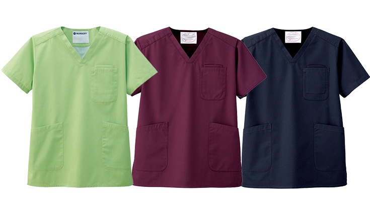 - 自社でナースウェアの企画・生産を手掛けるナースリーならではの強みを生かして、従来のスクラブより品質を落とすことなく低価格化を実現。発売直後から看護師・医師問わず医療従事者の皆様に大好評をいただき、その後も改良を続けながらロングセラーを続けています。